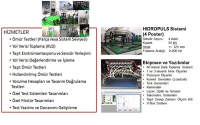 - Analizörler (DEWESoftSIRIUSi, ESAM, VBOX, B&K analizör ve yazılımları)